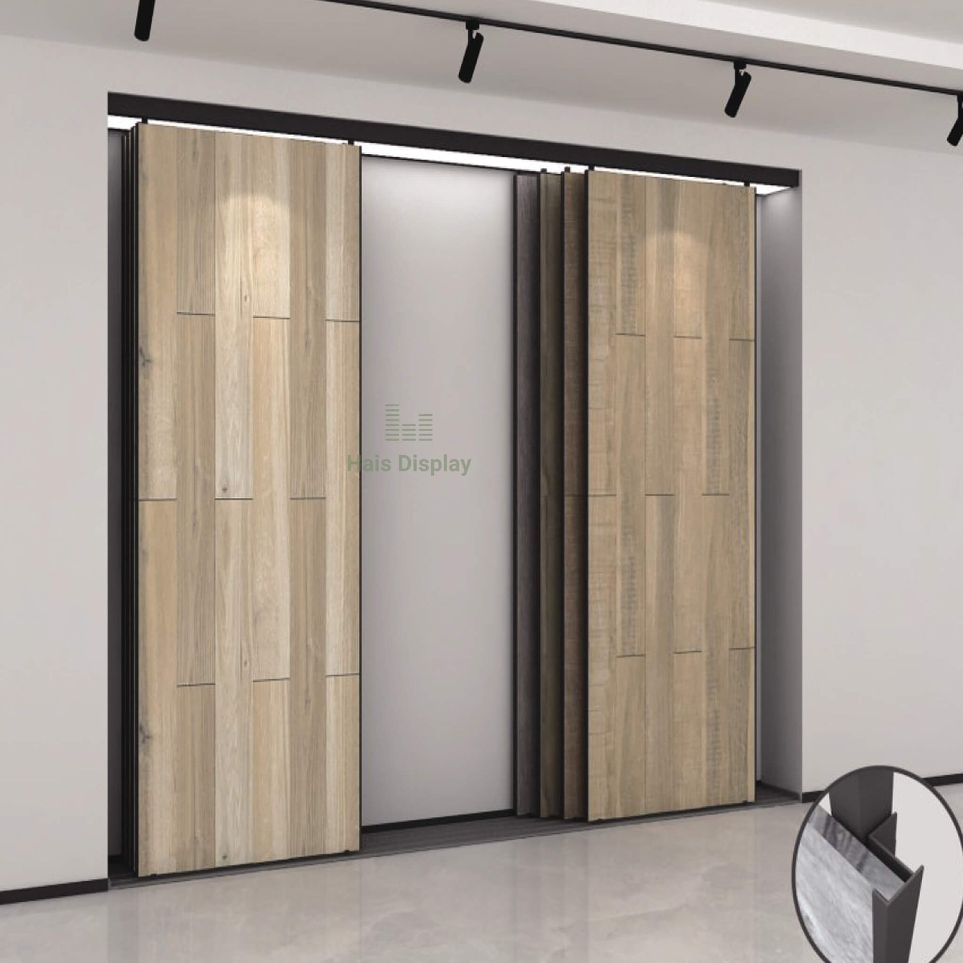 Présentoir mural horizontal en métal pour carreaux de quartz ou personnalisé selon votre site, principalement pour les échantillons de carreaux de sol en céramique. Le système de remplacement des panneaux vous permet de le faire facilement. Il peut ajuster les carreaux de manière parfaite. Le système de remplacement simple des carreaux permet de réaliser des panneaux d'échantillons de carreaux économiques et pratiques.
