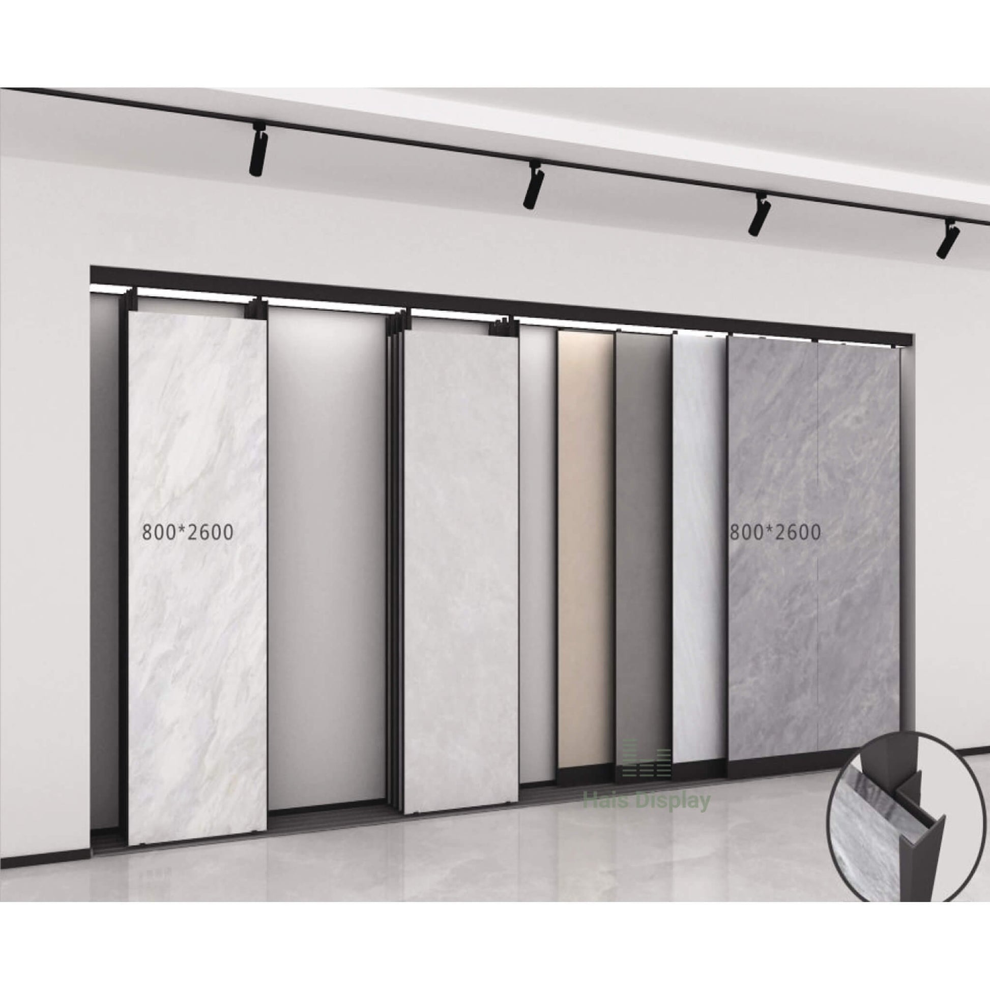 Présentoir coulissant pour carreaux de céramique - Présentoir en pierre de quartz et marbre pour salle d'exposition